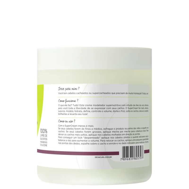 Ativador de cachos para cabelos cacheados. Deva Curl Supercream deixa o cacho definido, hidratado, nutrido e reduz o frizz para cachos impecáveis.