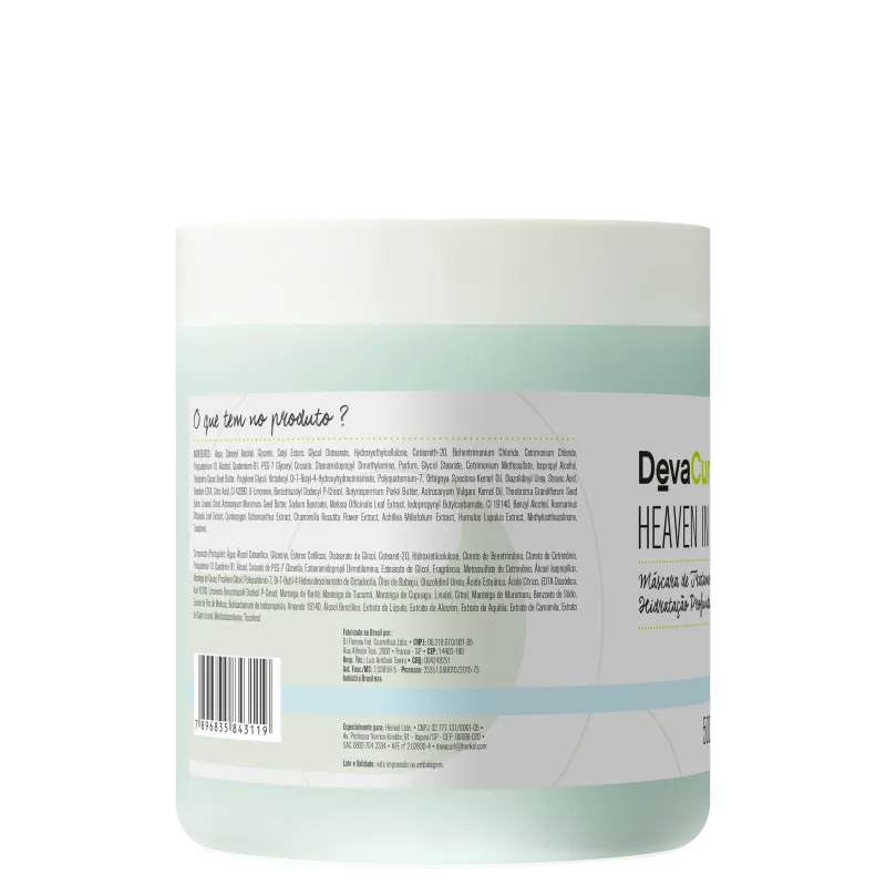 A Máscara Capilar Deva Curl Heaven in Hair nutre profundamente e devolve o equilíbrio hídrico necessário para manter a beleza e a boa saúde dos cabelos com ondas ou caracóis. Com fórmula exclusiva, com Cupuaçu, Murumuru e Manteiga de Cacau entre os principais ingredientes, o produto ainda amacia, ilumina, ajuda a definir e protege os fios contra os danos causados por agentes externos.