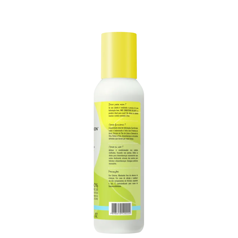 O Condicionador Deva Curl One Condition Delight deixam suas ondas mais bonitas e definidas. Sua fórmula é enriquecida com ativos que garantem hidratação na medida certa, deixando os fios macios e sem pesar. Livre de Parabeno, Sulfato e Silicone.
