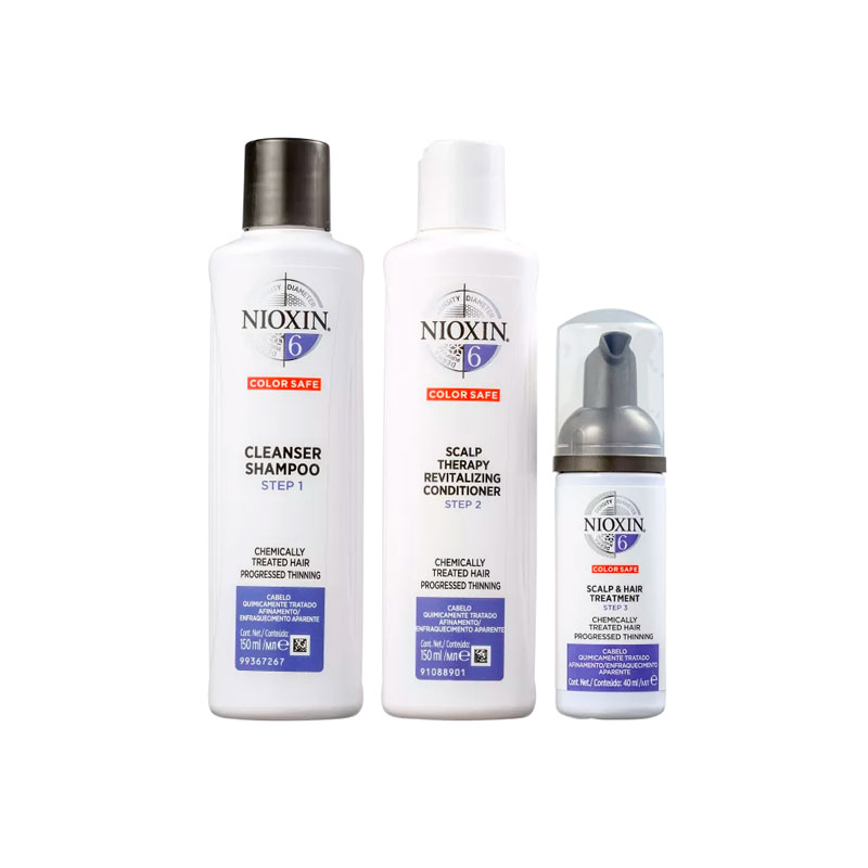 Kit Nioxin System 6 Small conta com uma abordagem 3D que age na densidade, diâmetro e derme, de forma a desobstruir os folículos pilosos e equilibrar o couro cabeludo e dar corpo e saúde ao cabelo da raiz às pontas. As fórmulas ainda restauram os níveis de umidade naturais e protegem a cor do desbotamento. Assim, o kit combina princípios de cuidados com a pele com o tratamento capilar para diminuir a rarefação, hidratar e disciplinar os fios.