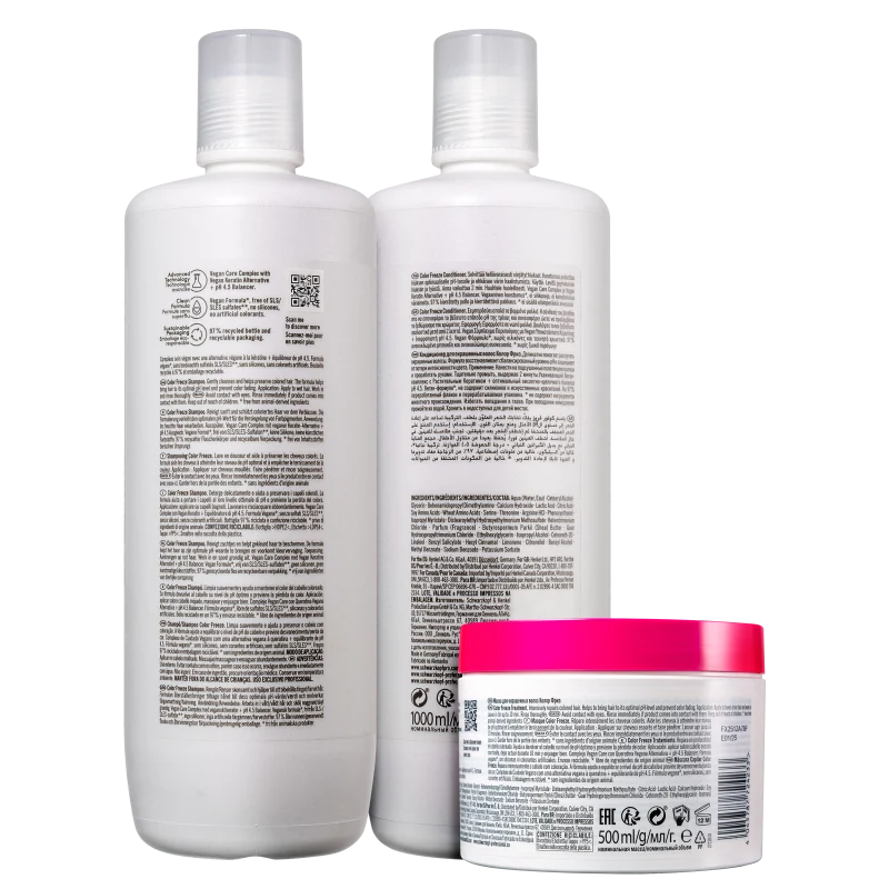 O Kit Schwarzkopf Professional BC Bonacure Clean Performance Color Freeze Profissional Trio apresenta uma fórmula clean beauty inovadora, 100% vegan, sem Sulfatos, Silicones, Óleos Minerais, Microplásticos e Corantes Artificiais, com um elevado nível de biodegradabilidade. Sua tecnologia avançada conta com Vegan Care Complex, além de ter embalagens sustentáveis em produtos de rendimento elevado.