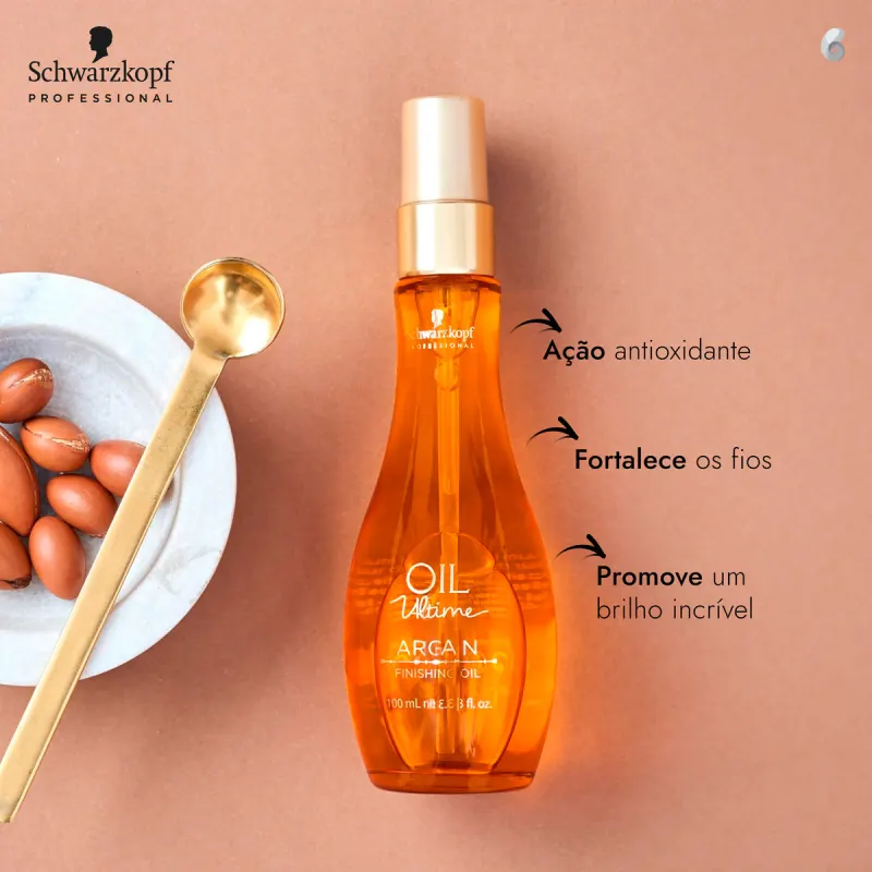 Óleo Finalizador Capilar Schwarzkopf Professional Oil Ultime Argan tem uma fórmula vegana que promove nutrição extra e efeito antifrizz sem sobrecarregar os fios e garantindo a suavidade necessária para o cabelo.