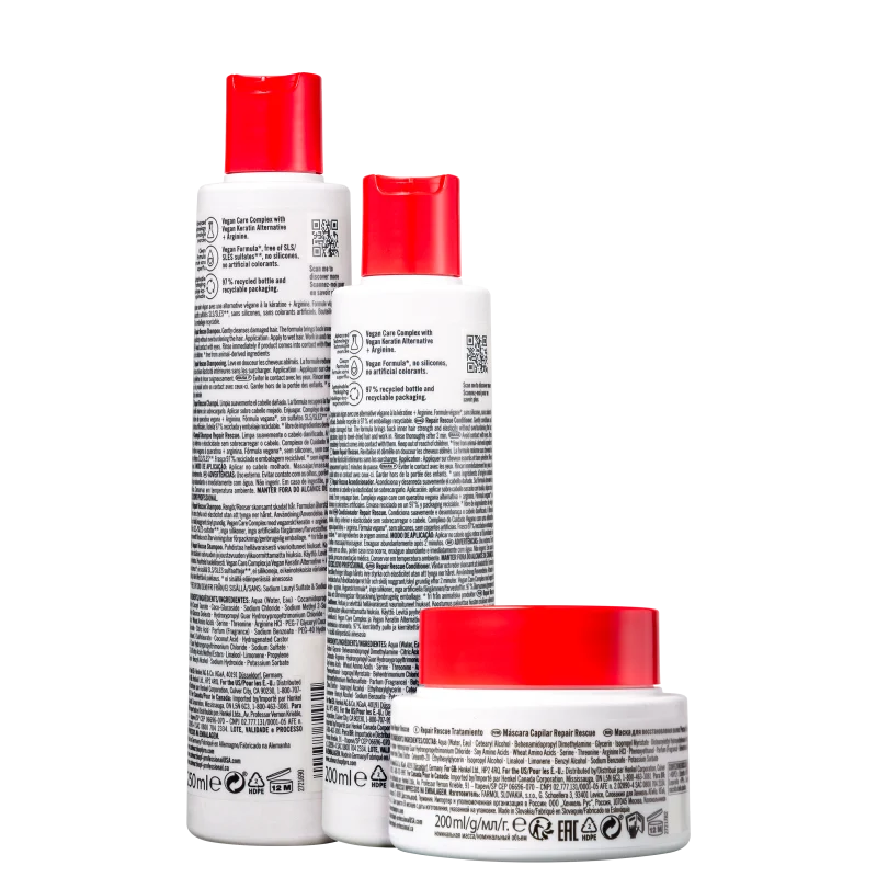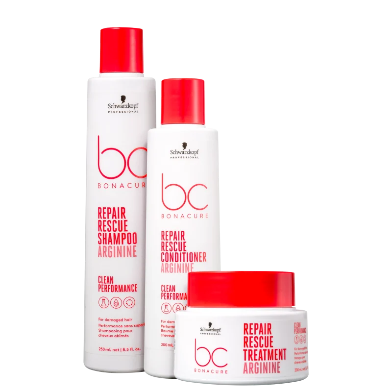 O Kit Schwarzkopf Professional BC Bonacure Clean Performance Repair Rescue Trio apresenta uma fórmula clean beauty inovadora, 100% vegan, sem Sulfatos, Silicones, Óleos Minerais, Microplásticos e corantes artificiais, com um elevado nível de biodegradabilidade. Sua tecnologia avançada conta com Vegan Care Complex, além de ter embalagens sustentáveis em produtos de rendimento elevado.
