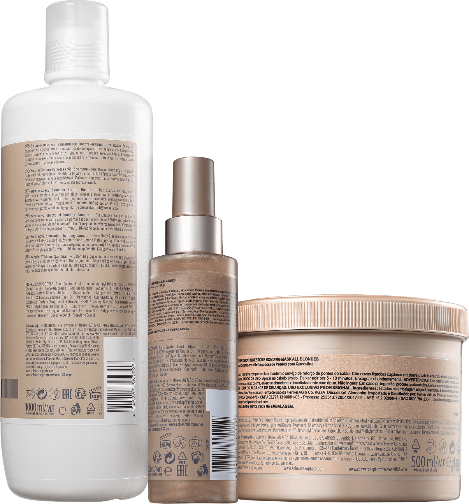 Schwarzkopf Professional Blondme Reconstrução e Brilho Máximo conta com a tecnologia Advanced Bonding System, que refaz as pontes estruturais que tenham sido rompidas pelas agressões, além de selar a camada de cutículas responsáveis pela proteção dos fios. Uma junção de cuidados que restaura a resistência capilar, protege contra novos danos e oferece muito mais maciez e luminosidade aos cabelos loiros.