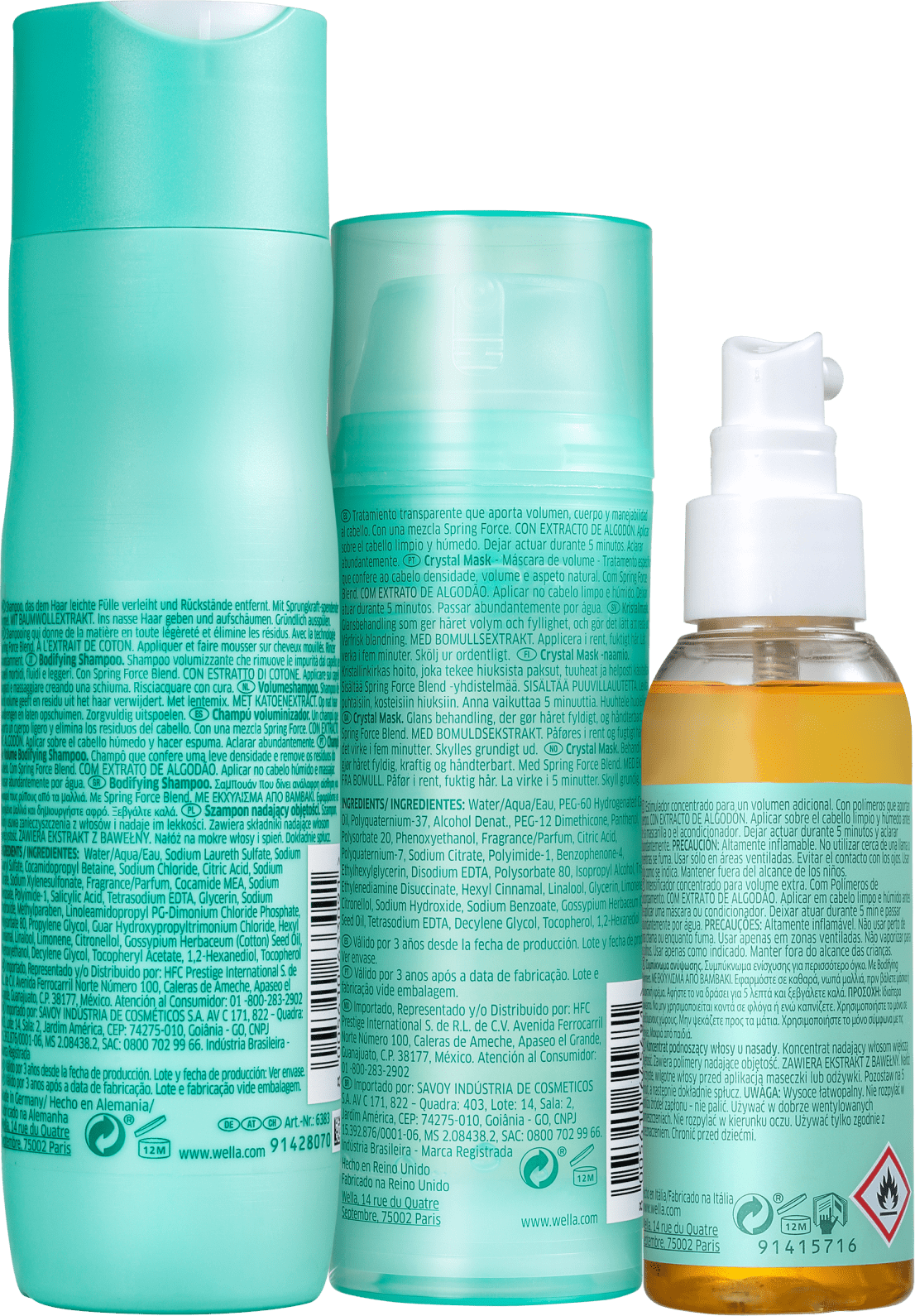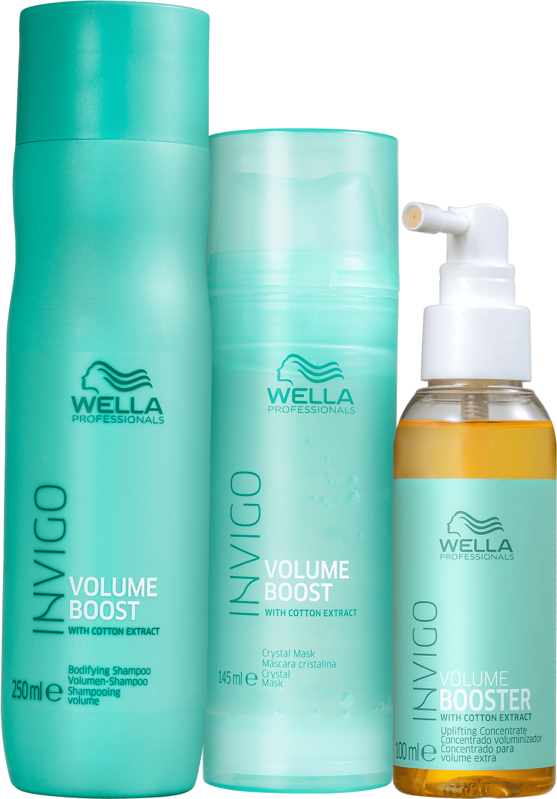 Kit Wella Professionals Invigo Volume Boost Trio conta com tecnologias únicas para proporcionar mais corpo. Possui ativos que agem como molas que dão estrutura aos fios, além da máscara de textura cristalina que trata de maneira extremamente leve.